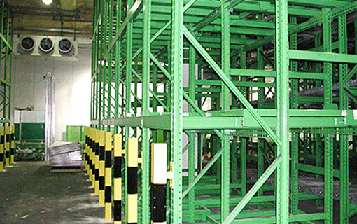 랙내에 Fork Lift 가 들어가는 드라이브인랙은 물품의 종류가 적은 것을 대량으로 보관하는 시스템이다. 소품종 대량화물보관에 최적이며 회전율이 높고 파렛트단위의 배치에 의해 선입선출과 선입후출로 보관되는 물품에 가장 적합하다.