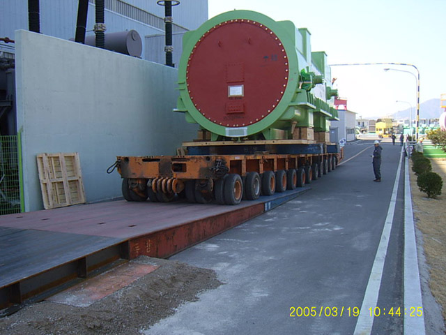 운송로 보강 후 Stator 운반 고리원자력 1호기 발전기 교체 운송로 보강 후 Stator 운반 고리원자력 1호기 발전기 교체