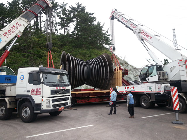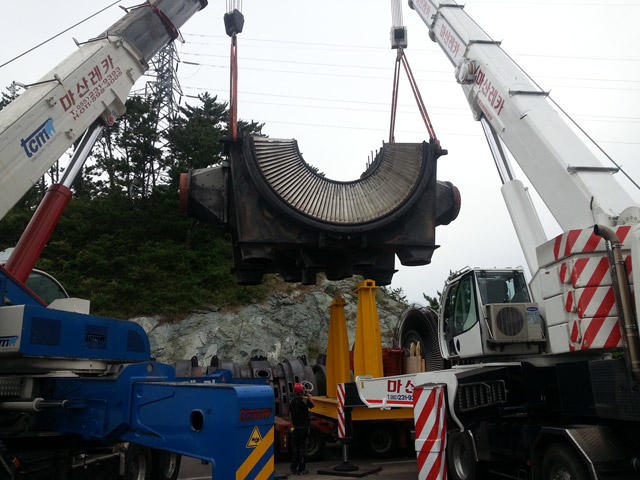 Cylinder 인양 후 안착 포천 복합화력 상부 Compressor Cylinder 인양 후 안착 포천 복합화력 상부 Compressor